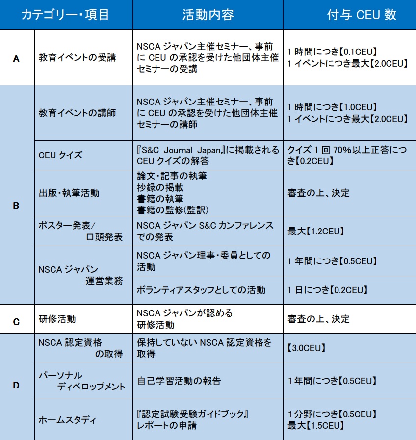 単位の取得方法はNSCAよりも更に多いため割愛しますが、現実的には以下の4つの組み合わせになると思います。(公式の一覧はこちら)
