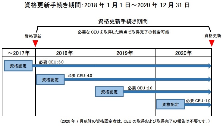 有効期限の2020年に取得した人以外は1つのカテゴリーでは必要単位が取得できないようになっています。